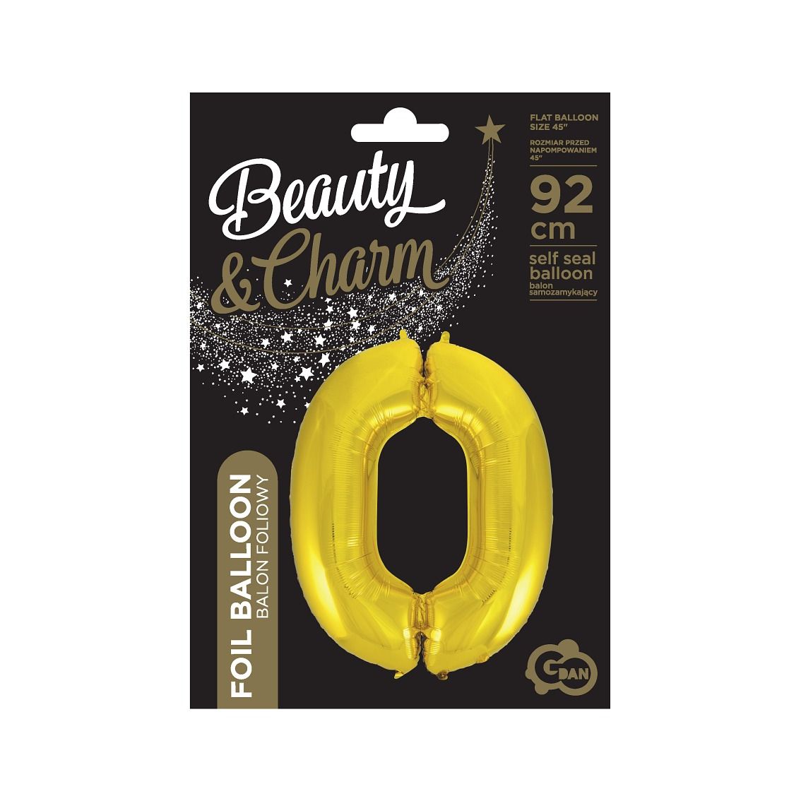 BALON FOLIOWY 92 CM B&C GODAN ZŁOTY CYFRA 0 Foliowy, złoty balon (cyfra 0) od GODAN. Posiada samozamykający się wentyl, który nie wymaga dodatkowych zabezpieczeń. Możemy napompować go odpowiednią pompką. Istnieje możliwość napełnienia go nie tylko powietrzem, ale również helem (wówczas będzie się unosił). Wyróżnia się złocistą powierzchnią z metalicznym połyskiem. Rozmiar balonu po napompowaniu to 92cm. Cena za sztukę. EAN: 5901238632238
