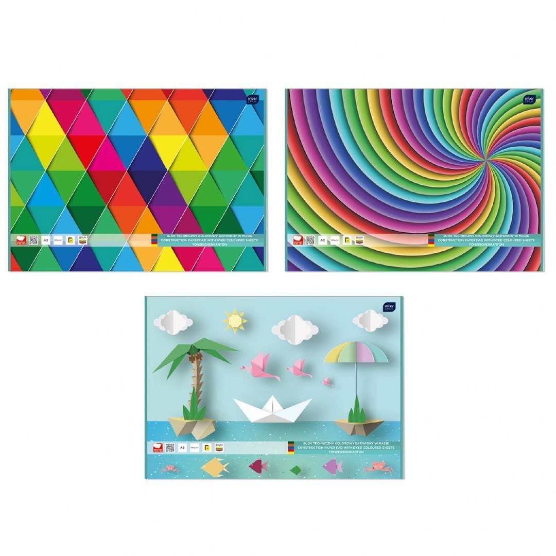 Blok techniczny do wykonywania wszystkich prac plastycznych suchych i mokrych, idealny do rysunku i kreślenia ołówkiem lub tuszem. 10 kolorowych kart. Format A3. EAN: 5902277170811
