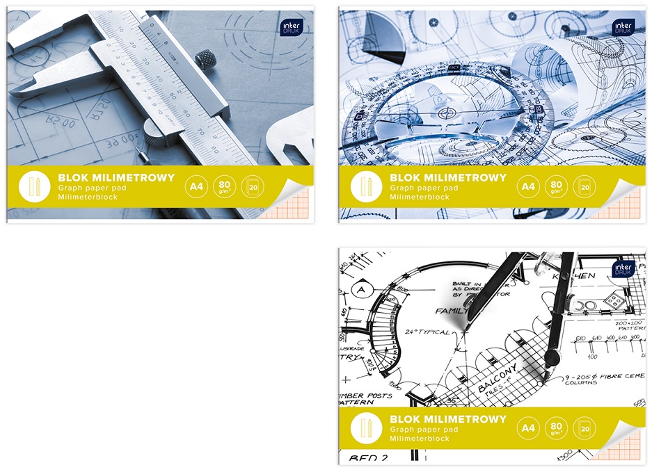 blok milimetrowy format A4 różne wzory okładek okładki wysyłamy losowo ilość kartek w bloku: 20 EAN: 5902277170019