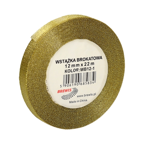 WSTĄŻKA BROKATOWA 12MM X 22M WB12-1 BREWIS ZŁOTA