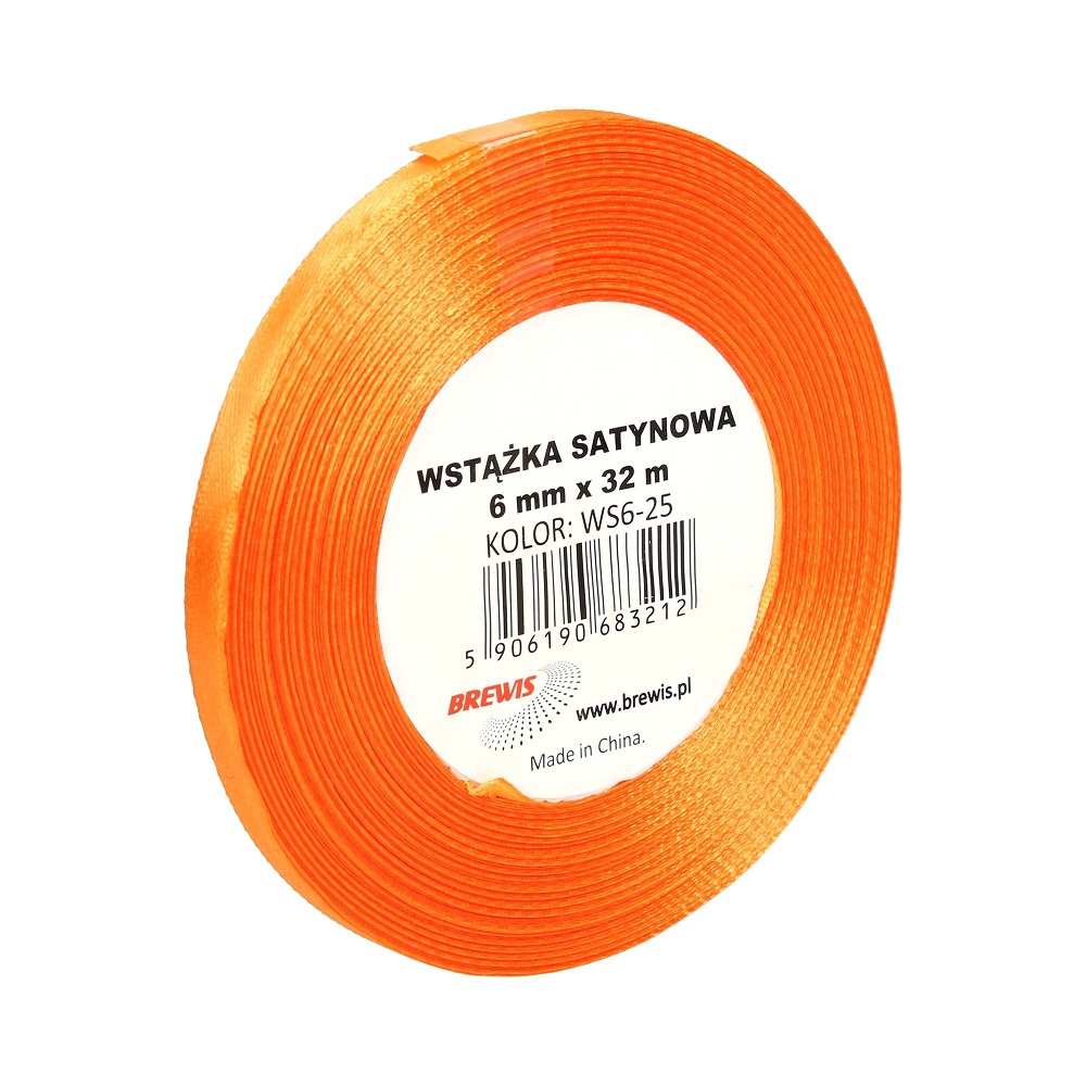 WSTĄŻKA SATYNOWA 6MM X 32M WS6-25 BREWIS CIEMNO POMARAŃCZOWA