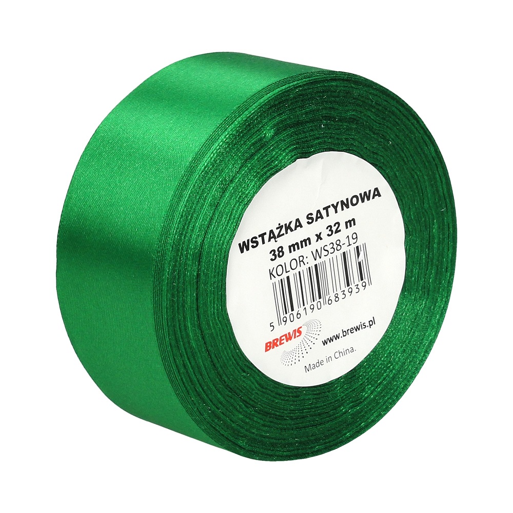WSTĄŻKA SATYNOWA 38MM X 32M WS38-19 BREWIS ZIELONA
