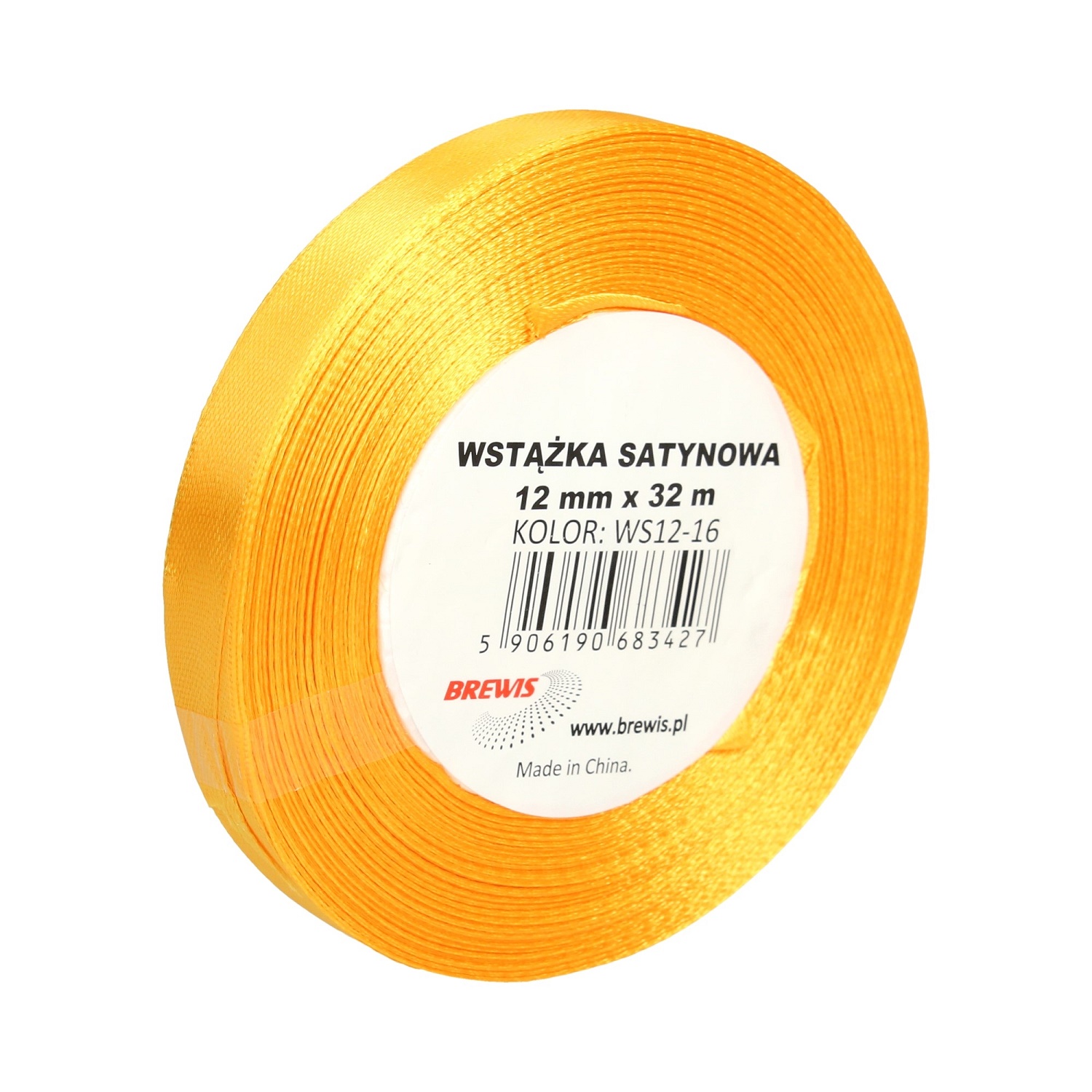 WSTĄŻKA SATYNOWA 12MM X 32M WS12-16 BREWIS JASNO POMARAŃCZOWA