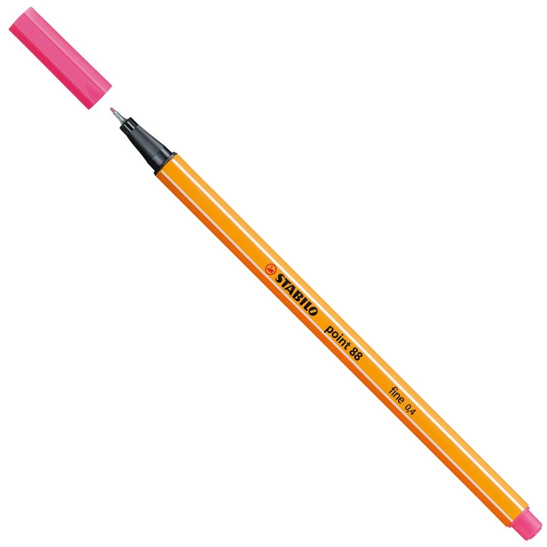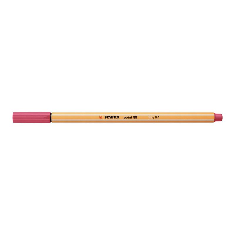 CIENKOPIS POINT 88 FINE 0,4MM STABILO 88/17 CIEMNORÓŻOWY Uniwersalny cienkopis do pisania, podkreślania, kreślenia i kolorowania. Mocna, oprawiona w metal końcówka jest odporna na złamania i rozwarstwienia, co gwarantuje wysoki komfort pisania aż do całkowitego wyczerpania tuszu. Grubość linii – 0,4 mm. Wentylowana skuwka umożliwia oddychanie w przypadku nagłego połknięcia. Cena za sztukę EAN: 4006381493000