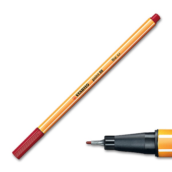 CIENKOPIS POINT 88 FINE 0,4MM STABILO 88/50 CIEMNO CZERWONY Uniwersalny cienkopis do pisania, podkreślania, kreślenia i kolorowania. Mocna, oprawiona w metal końcówka jest odporna na złamania i rozwarstwienia, co gwarantuje wysoki komfort pisania aż do całkowitego wyczerpania tuszu. Grubość linii – 0,4 mm. Wentylowana skuwka umożliwia oddychanie w przypadku nagłego połknięcia. kolor ciemnoczerwony Cena za sztukę EAN: 4006381333887