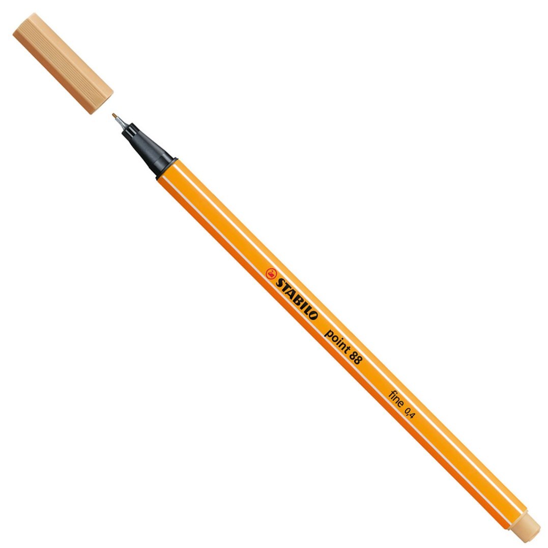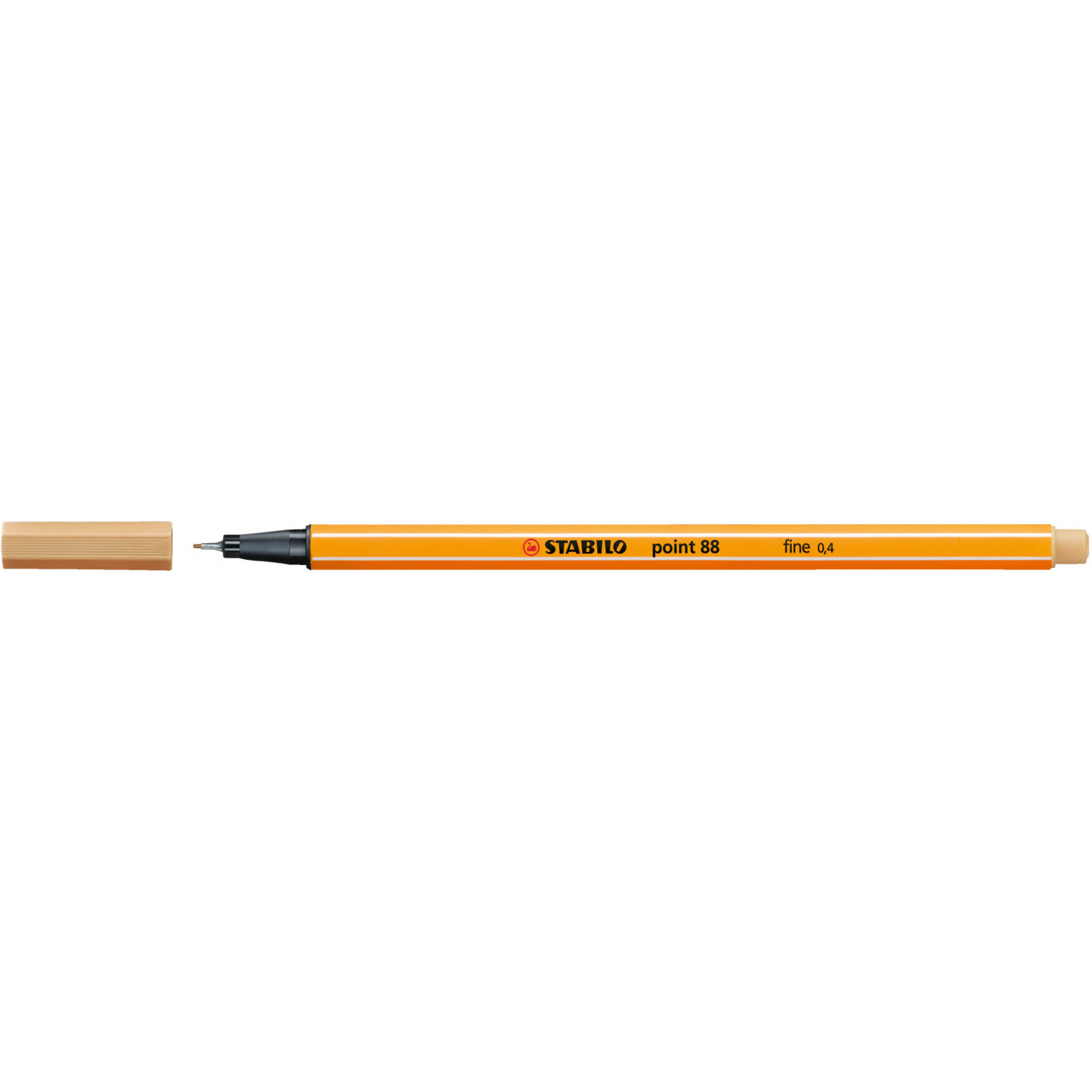CIENKOPIS POINT 88 FINE 0,4MM STABILO 88/88 OCHRA JASNY Uniwersalny cienkopis do pisania, podkreślania, kreślenia i kolorowania. Mocna, oprawiona w metal końcówka jest odporna na złamania i rozwarstwienia, co gwarantuje wysoki komfort pisania aż do całkowitego wyczerpania tuszu. Grubość linii – 0,4 mm. Wentylowana skuwka umożliwia oddychanie w przypadku nagłego połknięcia. kolor ochra jasna EAN: 4006381493307