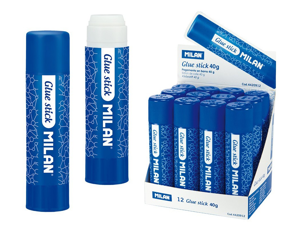 KLEJ W SZTYFCIE 40G MILAN Klej w sztyfcie 40 g w kolorze białym. Niewidoczny po wyschnięciu. Uniwersalny: łatwo klei papier, karton, tkaninę, filc, korek, skórę i piankę. Szybkoschnący. Bez rozpuszczalnika. Idealny do użytku w szkolnego. Cena za sztukę. EAN: 8411574074694
