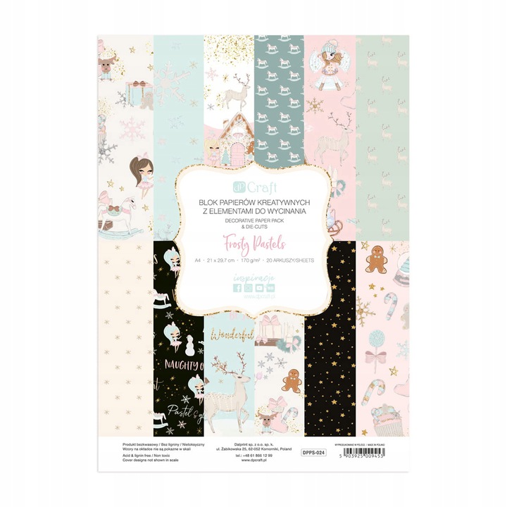 BLOK PAPIERÓW KREATYWNYCH Z ELEMENTAMI DO WYCINANIA FROSTY PASTELS DPPS-024 DP CARFT