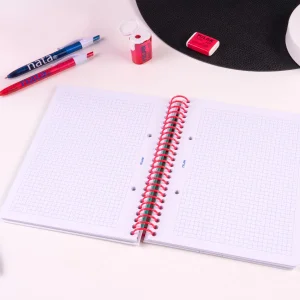 Kołozeszyt A4 o pojemności 120 kartek w kratkę, oprawiony na solidnej spirali, idealny do notatek, szkiców i prac szkolnych lub biurowych.