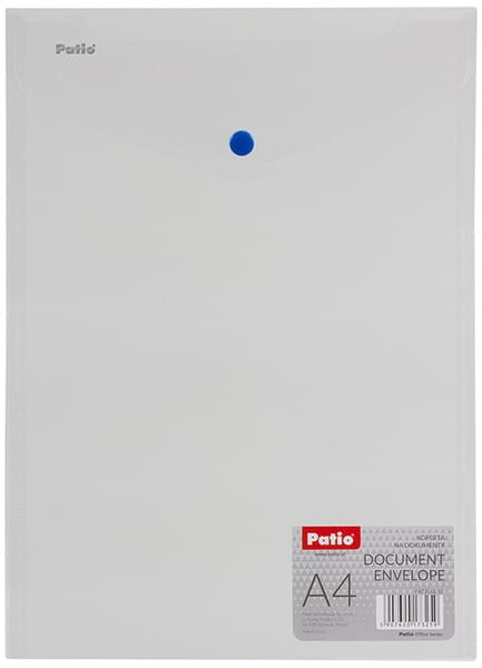 KOPERTA NA DOKUMENTY A4 VERTICAL 3163/13 PATIO BEZBARWNA Teczka kopertowa A4 pionowa Kolor: bezbarwna Cena za 1 sztukę. EAN:5907620173259