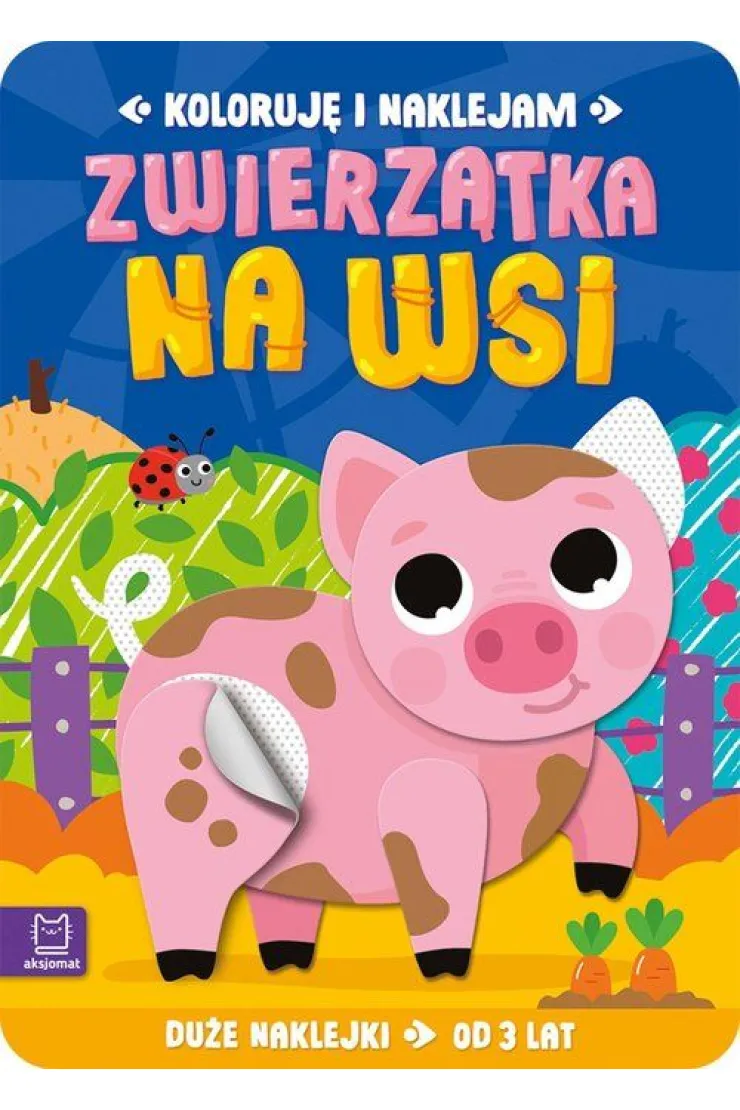 Książeczka "Koloruję i naklejam: Zwierzątka na wsi" to edukacyjna propozycja dla dzieci od 3 lat, w której maluchy poznają krowę, owcę, koguta, konika, królika, świnkę i kozę, rozwijając zdolności manualne poprzez naklejanie elementów według numerów oraz kolorowanie obrazków.