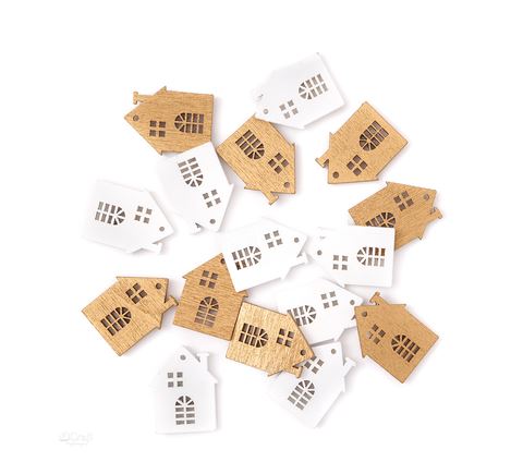 SAMOPRZYLEPNE KSZTAŁTY Z DREWNA DOMKI 16 SZT BIAŁE ZŁOTE DPDN-200 DP CRAFT
