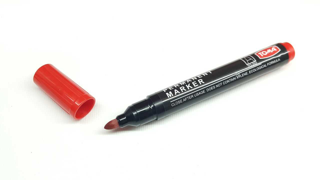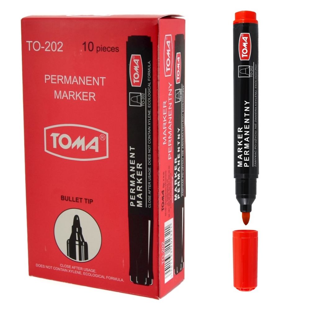 TOMA MARKER PERMANENTNY CZERWONY 1,5 MM TO-202 Marker permanentny z wyjątkowo trwałym tuszem wodoodpornym, nie zawierający ksylenu i toluenu. Do pisania po wszystkich powierzchniach. Końcówka okrągła 1,5 mm EAN: 5901133202215
