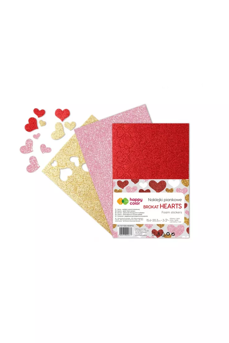 NAKLEJKI SERCA BROKATOWE A5 3KOL HAPPY COLOR