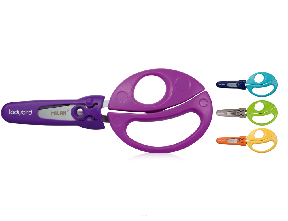 Nożyczki szkolne Milan Biedronki - nożyczki w kształcie biedronki o długości 15 cm - ostrza wykonane z nierdzewnej stali zaokrąglone na końcach z plastikową osłonką - ergonomiczne, plastikowe uchwyty Mix kolorów - kolor wysyłamy losowo.