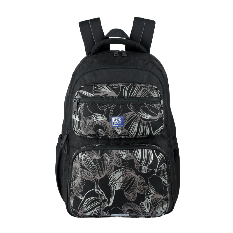 Plecak OXFORD DREAM TECH RPET CZARNY KWIATY to połączenie nowoczesnego designu i ekologicznych materiałów RPET, zapewniające trwałość i styl na co dzień oraz w szkole. Funkcjonalne rozwiązania obejmują wygodne szelki, pojemną komorę główną oraz praktyczne kieszenie, które ułatwiają organizację potrzebnych przedmiotów. Wybierz niezawodny plecak, który łączy praktyczność z estetyką i dbałością o środowisko.