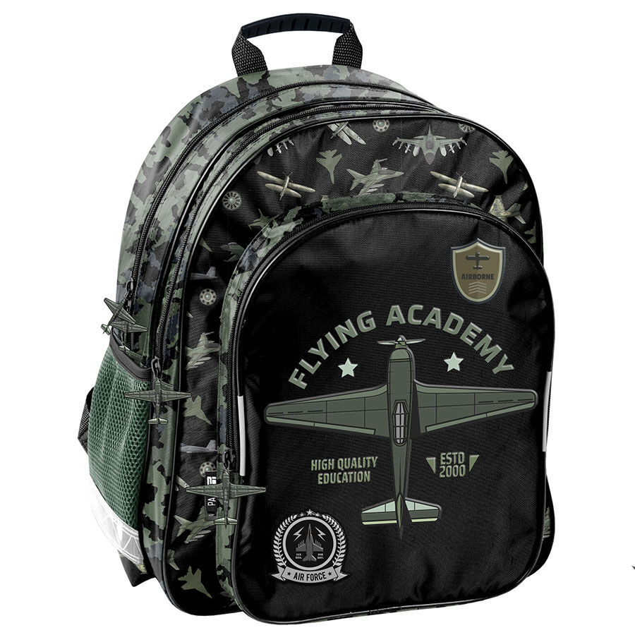 Plecak szkolny Flying Academy to idealne rozwiązanie dla uczniów, którzy cenią sobie wysoką funkcjonalność i komfort noszenia. Wykonany z odpornego na przemakanie materiału, plecak oferuje dwie obszerne komory, pojemną kieszeń z przodu oraz dwie boczne kieszenie z siatki na bidon czy termos, co zapewnia łatwy dostęp do niezbędnych akcesoriów. Ergonomicznie wyprofilowane plecy oraz regulowane szelki zapewniają świetne wsparcie dla pleców, co sprawia, że jego noszenie jest bardzo wygodne.