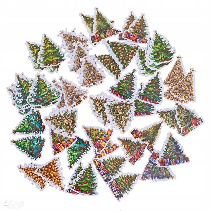 NAKLEJKI WINYLOWE ŚWIĄTECZNE 4-6 CM 46SZT CHRISTMAS TREES DPNK-284 DP CRAFT