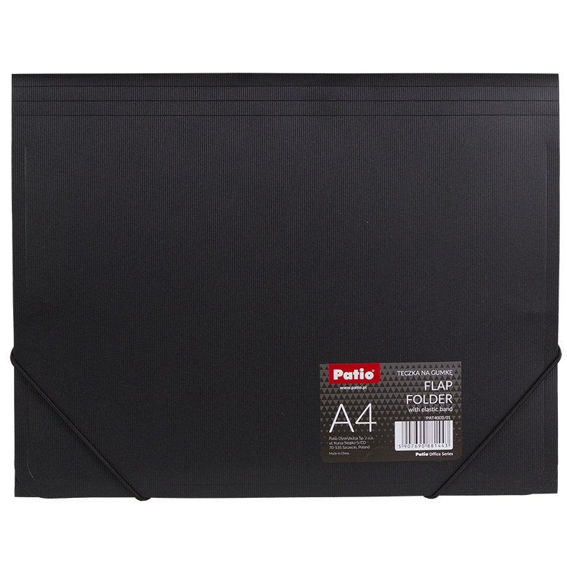 TECZKA NA GUMKĘ A4 CZARNA PATIO 4003 Teczka na gumkę Patio wykonana z wysokiej jakości tworzywa. Klapki chronią zawartość przed uszkodzeniem. Nabłyszczana powierzchnia nadaje jej unikalny i bardzo atrakcyjny wygląd. Idealna na zajęcia plastyczne lub techniczne do szkoły, jak również dla studenta lub studentki na uczelnie. Format: A4 Kolor: czarny Cena za 1 sztukę. EAN:5907690881443