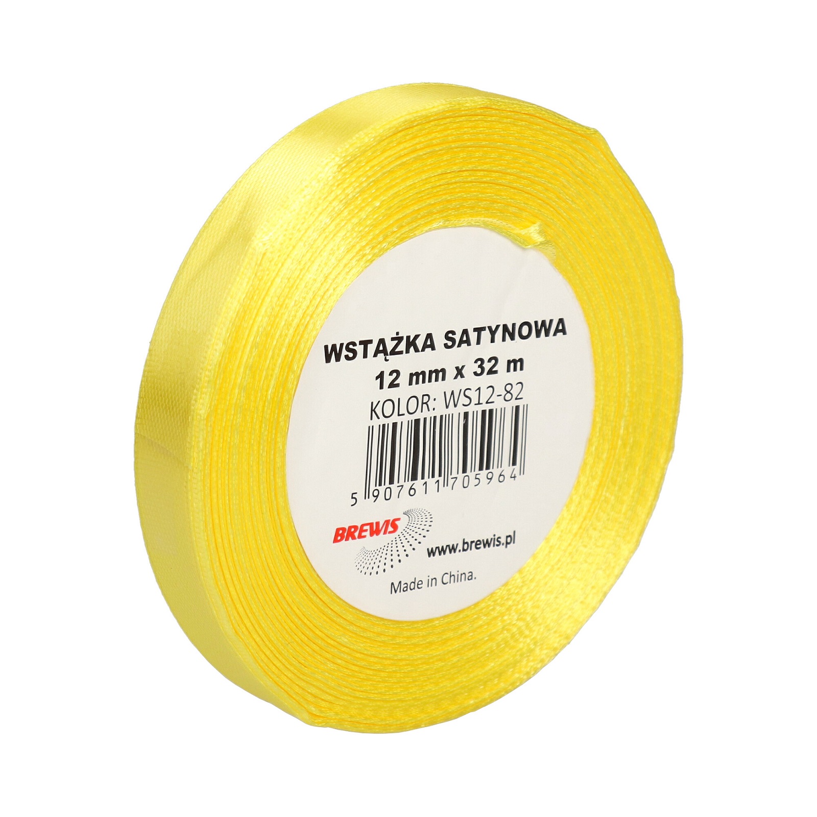 WSTĄŻKA SATYNOWA 12MM X 32M WS12-82 BREWIS KANARKOWY