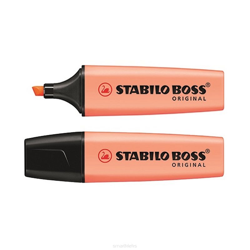 Zakreślacz Stabilo Boss Original Pastel Pomarańczowy 70/126 - nowa odsłona klasycznego już zakreślacza Stabilo Boss Original - zakreślacz do papieru zwykłego, samokopiującego i faksowego - pozostawiony bez skuwki nie zasycha nawet przez 4 godziny - tusz na bazie wody - 2 grubości linii: 2 i 5 mm - kolor: pomarańczowy pastel EAN: 4006381492386