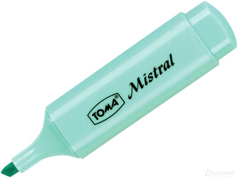 ZAKREŚLACZ TEKSTU MISTRAL TOMA - NIEBIESKI PASTEL (TO-334) •atrakcyjny pastelowy kolor •tusz odporny na działanie wody i światła •do stosowania na różnych rodzajach papieru •końcówka ścięta końcówki 1-5 mm EAN: 5901133334718