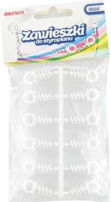 ZAWIESZKI DO STYROPIANU 12 SZTUK ZA-1 BREWIS Zawieszki do ozdób ze styropianu. Opakowanie zawiera 12 sztuk. Cena za opakowanie. EAN:5906190685650