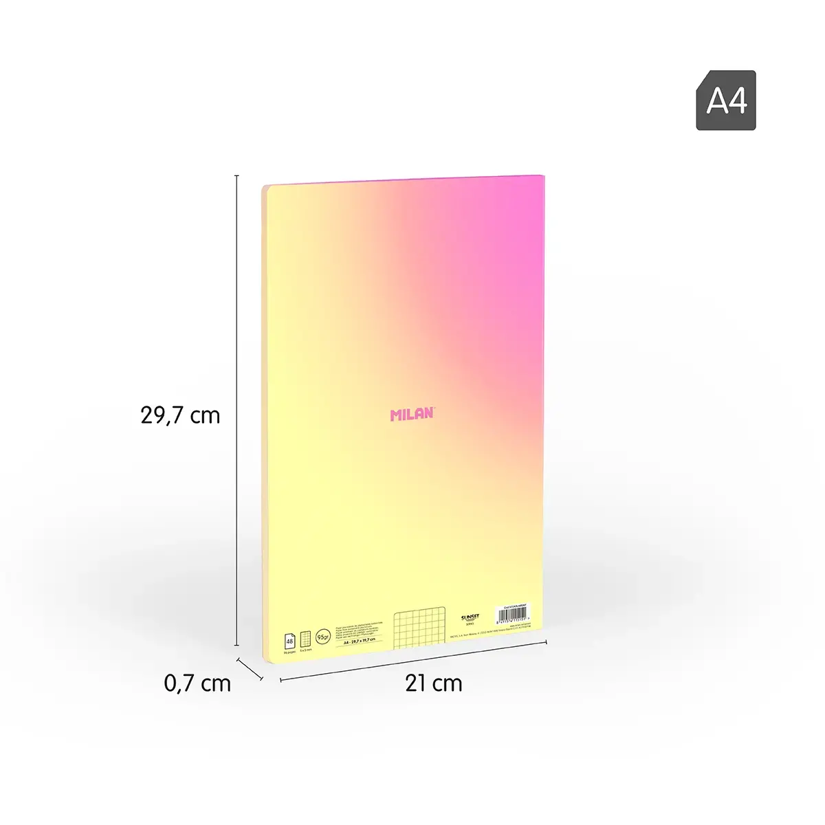 Zeszyt klejony A4, 48 kartek, seria Sunset w kolorze żółtym marki Milan — praktyczny i estetyczny wybór do szkoły, biura oraz notowania w domu.